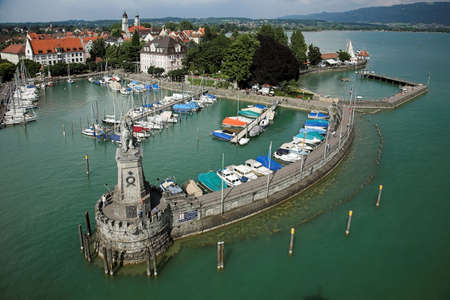 Shipping from the harbor entrance of the island Lindau at Lake Constance in Bavaria, Germany