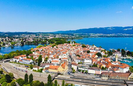 Aerial view on Lindau city island, Bodensee lake Constance. Germany.