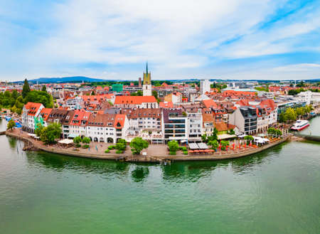 Friedrichshafen old town aerial panoramic view. Friedrichshafen is a city on the shore of Lake Constance or Bodensee in Bavaria, Germany.