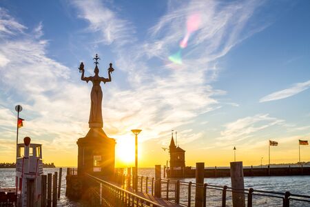 Harbor entrance of the city of Constance on Lake Constance, Lake Constance in Germany with the Imperia visible from afar