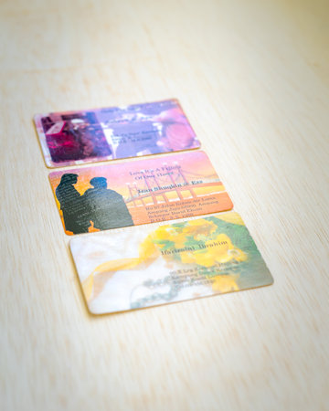 Kuala Lumpur, Malaysia - May, 2021 Colourful and decorated name cards for school kids, popular in 90s.