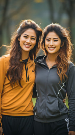 Group of young women laughing happily, dressed in sportswear. Sports, fitness and friendship. Generative Ai
