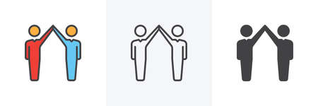 Teamwork icon. Line, glyph and filled outline colorful version, High five outline and filled vector sign. Symbol, logo illustration. Different style icons set. Vector graphics