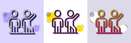 Teamwork line icon. Halftone dotted pattern. Gradient icon with grain shadow. Team work together sign. Business partnership symbol. Line teamwork icon. Various designs. Vector