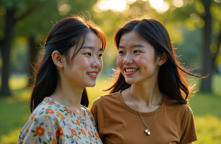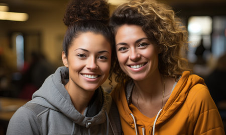 Joyful embrace: young hispanic females sharing a happy hug outdoors.