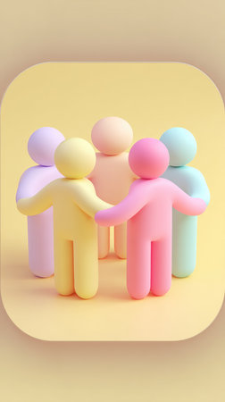 A group of colorful figures holding hands, symbolizing collaboration and togetherness in a vibrant setting.