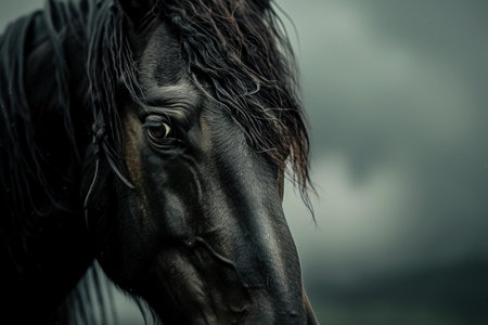 Closeup image capturing the powerful and mysterious eyes of a majestic black stallion