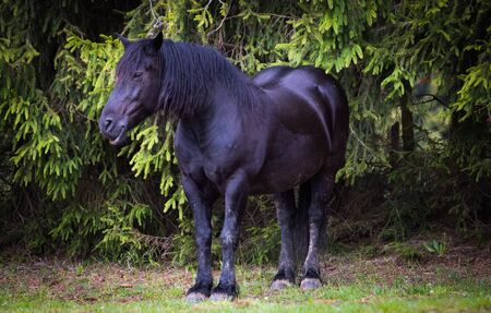 beaful domestic black horse with chic thick mane