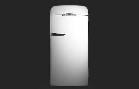 Empty refrigerator concept. Empty shelves of new refrigerator. Weight loss diet concept.