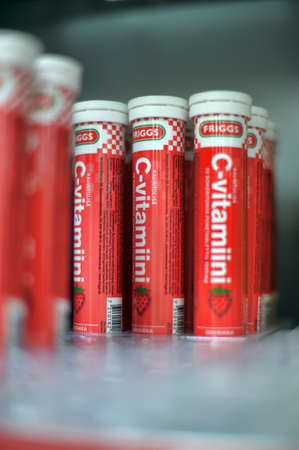 Vitamins on supermarket shelves,Lapenranta, Finland.