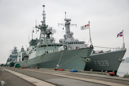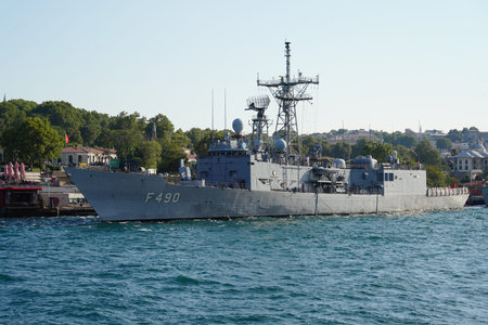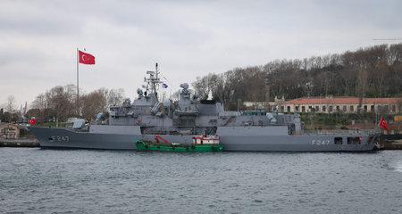 ISTANBUL, TURKIYE - APRIL 13, 2024: Turkish and Greek Frigates in Istanbul Port
