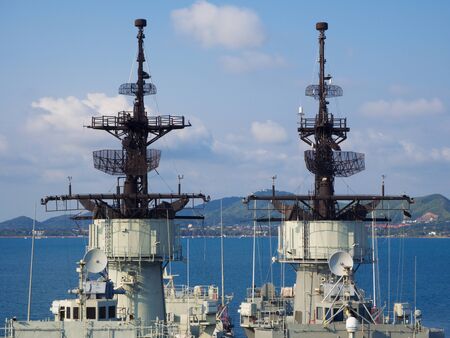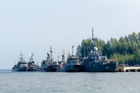 Chonburi ,Thailand-September 21,2013:2 Battle ship stop near HTMS Chakri Naruebet is biggest in Thai Military Battleship at Chonburi ,Thailand