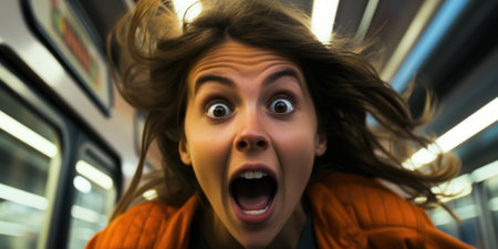 A woman with a surprised look on her face. Generative AI image.