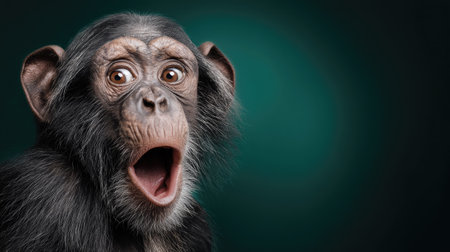 Surprised Baby Monkey Portrait Wide-Eyed and Open-Mouthed Expression on Black Background