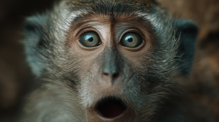Surprised monkey close-up with wide eyes and detailed facial features.