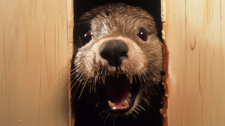 An AI generated illustration of A curious otter peeking its head out of a hole in a brick wall