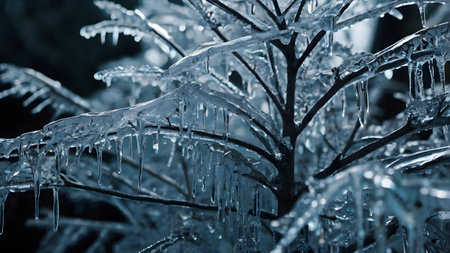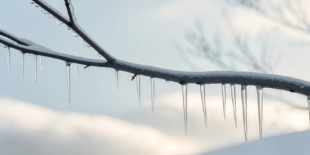 AI Generated. A branch covered in icicles hanging from it