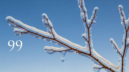 Winter's Touch: Frost on Branches Against Blue Sky