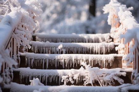 Snowy Staircases: Showcase the architectural beauty of snow-covered stairs, especially in historic areas. - Generative AI