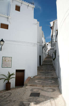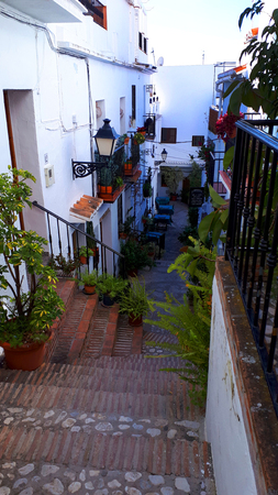 Steep street in Frigiliana in the Alpujarra Mountains of Andalucia