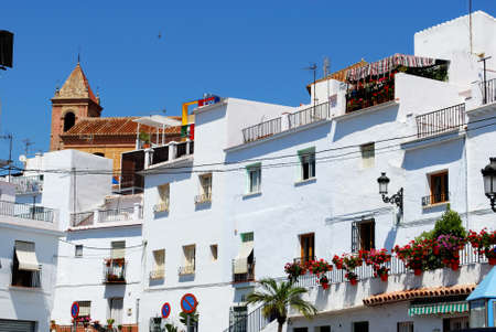 Townhouses with the church to the rear, Torrox, Malaga Province, Andalucia, Spain, Western Europe.