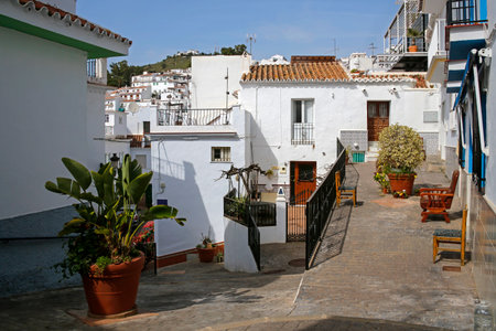 Street of San Sebastian in Mijas one of the most beautiful 'white' villages of Andalucia. It is in the Alpujarra mountains above the coast