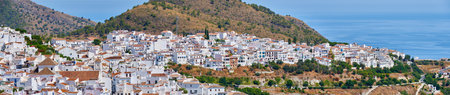 View of famous white village - pueblo blanco - called Frigiliana. White houses in small village in the mountains.
