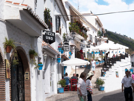 Mijas, Spain - July 12, 2014: Street scene of the famous Andalusian white village Mijas Pueblo
