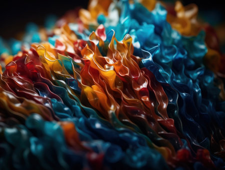 Colorful wave-like structures undulate gracefully against a dark backdrop, creating a captivating sense of movement and fluidity.