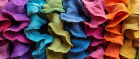 Abstract display of vibrant, overlapping fabric waves in warm and cool colors, creating a textured background. ideal for use in creative design projects, artistic visuals, or as a striking backdrop. Generative AI