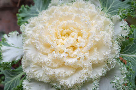 Close up of white peacock kale background, selective focus
