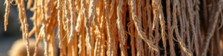 Close-up of hanging dried plant fibers with rich texture and soft lighting. That the image is generated using AI.