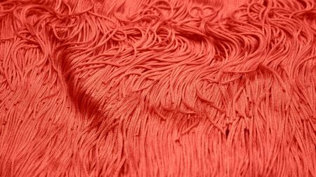 Macro photo. Close-up abstract textile fiber red-orange color extreme macro in shallow depth of field. Abstract background
