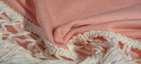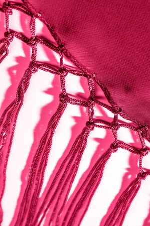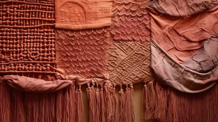 Handwoven textile fringe in pink and beige close-up. That the image is generated using AI.