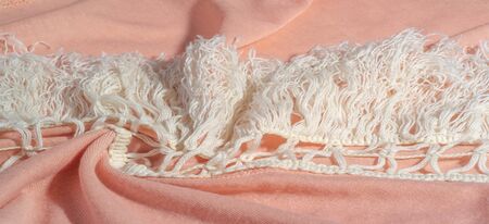 Knit Cloth with Fringe Background. Beige Knit Sweater Blank Backdrop