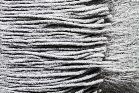 Close-up of grey woolen scarf on a gray background. Copy space.