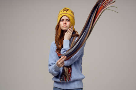 red-haired woman flu infection virus health care light background