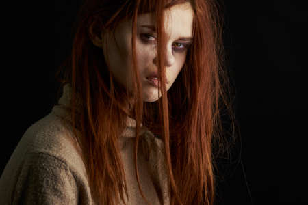 scared woman with bruises under her eyes beating depression abuse