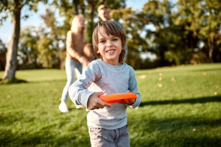 Good game. Alert little boy playing with his mother while relaxing in the open air