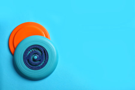 A dynamic display of colorful frisbees featuring unique designs set against a sleek city skyline. emphasizing innovation and modern style, this scene blend of vibrant sports gear with urban sophistication.