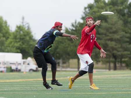Unidentified players during the 2011 Canadian Ultimate Championship Open Final between GOAT and Furious George. Ottawa, Canada, August 14th 2011.