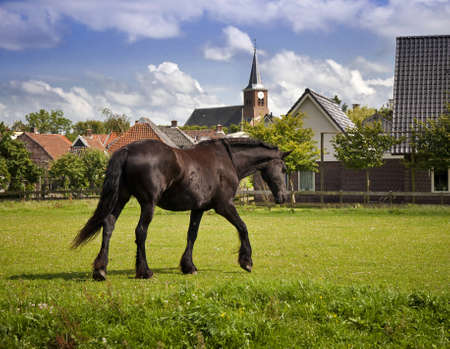 Beautiful horse in spring on farmland (Friesland Holland)