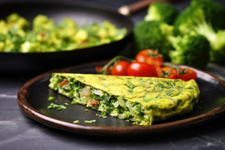 chopped broccoli in a green-hued veggie omelette, created with generative ai