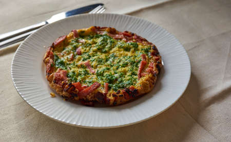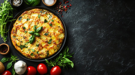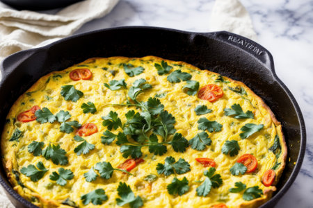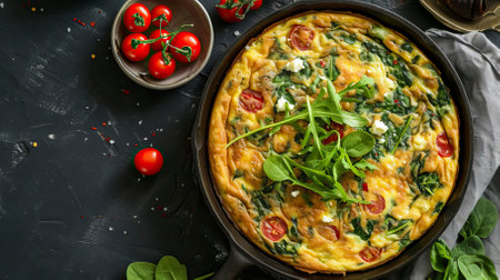 top view of frittata with herbs.omelet.breakfast, omelet.