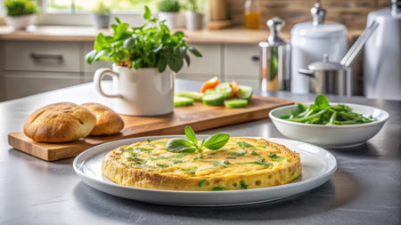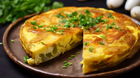 omelette with parsley on a bumpkinly boom postpone. Creative resource, AI Generated