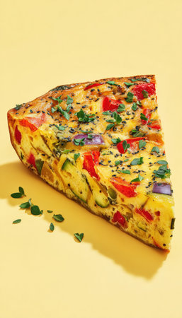 Vegan Vegetable Frittata Slice on Pastel Yellow Background