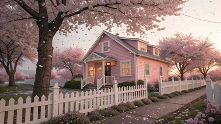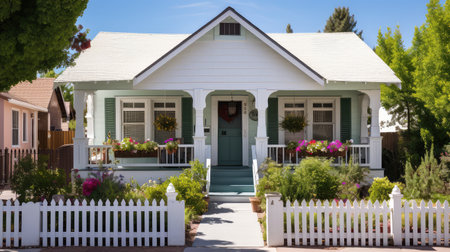 Black and White Cottage with White Fence and Path