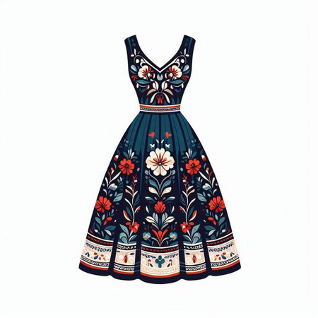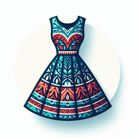 Illustration of a beautiful dress with a pattern. Vector illustration.