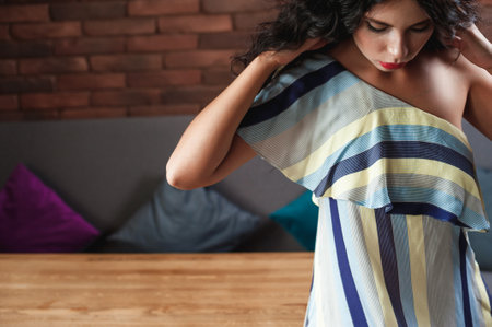 simple and comfortable casual dress is perfect for a party. top cropped photo. woman is going to dress up for special occasion.favourite dress