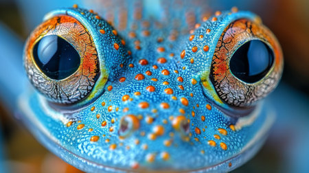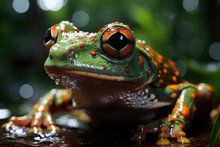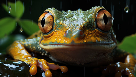 Colorful frog with striking eyes reflecting the lush environment of the rainforest